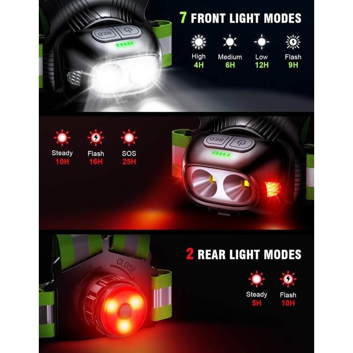 - 【Long Battery Life & Battery Indicator】 Powered by a USB-C rechargeable 1800mAh front battery plus a 150 mAh rear battery, our light up vest for night walking delivers a combined 4-25 hours (front) and 5-10 hours (rear) of run time after a quick 3-hour charge. 5-level indicator lights remind you when to charge the light -- never worry about running out of power. Ideal for long-distance runs.