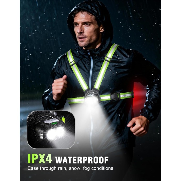 - 【IPX4 Waterproof for Multi-Scene】With an IPX4 waterproof rating and rugged design, this light up running vest repels rain, making it reliable for a wide range of scenes, from dawn jogs to night rides. It's not only an excellent reflective vest for walking and running, but also a great choice for camping, cycling, fishing, hiking, and emergency kits.